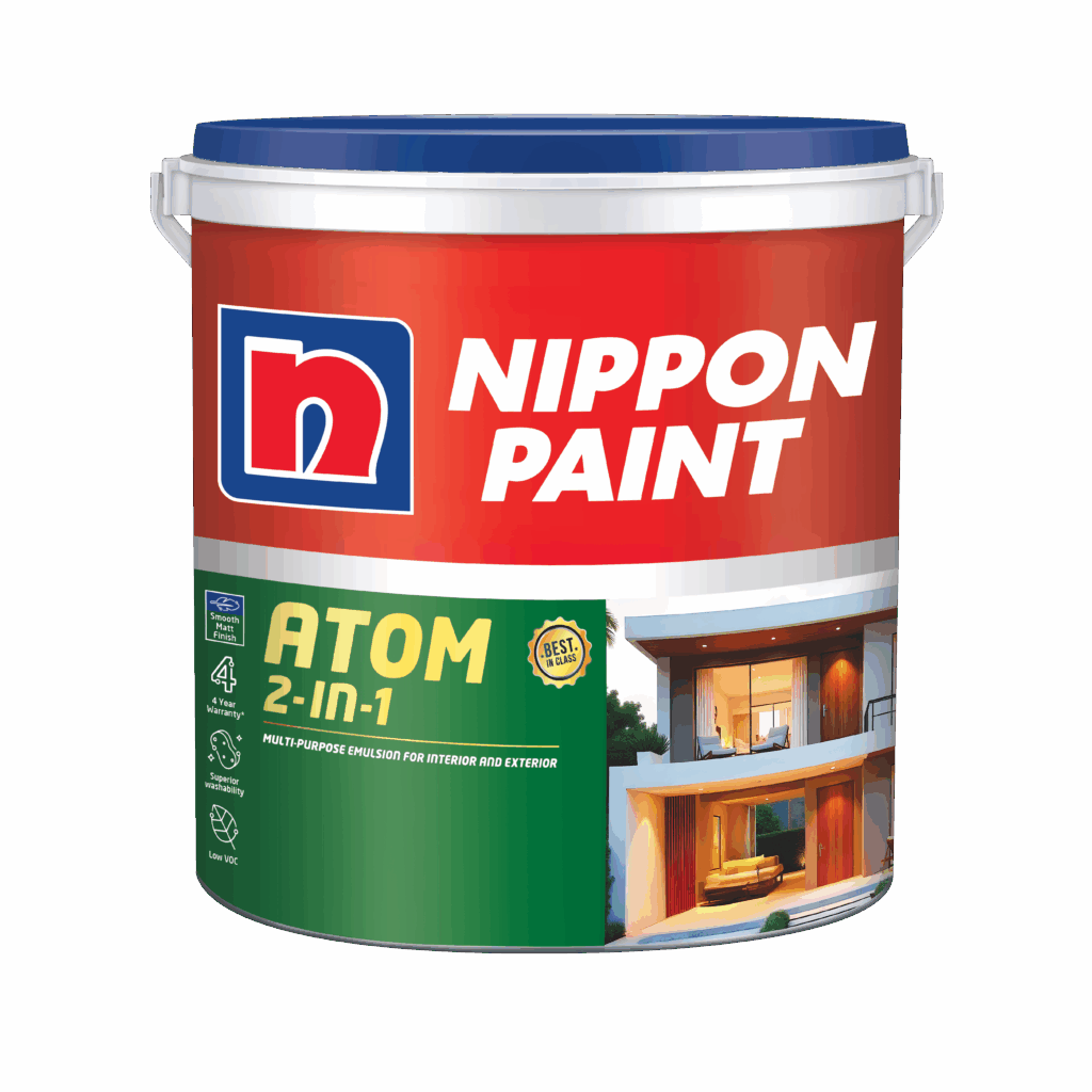 NIPPON PAINT ATOM 2-IN-1 multi-purpose emulsion is flat and durable paint which makes it ideal for both interior and exterior surfaces. Following extensive R&D and by listening to our decorating partners inputs, this dynamic paint has been developed for maximum performance which is based on acrylic modified emulsion.